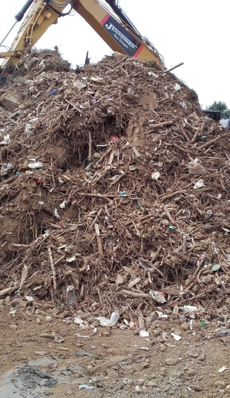 Stefan vertelt hoe het projectteam een oplossing vond voor vrijkomende grond die niet geschikt was voor hergebruik. “Dit materiaal bevatte een grote hoeveelheid ‘bodemvreemde materialen’ zoals we dat noemen: onder andere zwerfafval, hout en stenen. In overleg met de opdrachtgever is besloten om dit materiaal te zeven!” Zo hoefde Ploegam de grond niet te storten. Stefan: “In totaal is er zo’n 600 m3 grond gezeefd, en uiteindelijk bleef er maar 31 ton afval over dat we moesten afvoeren.”