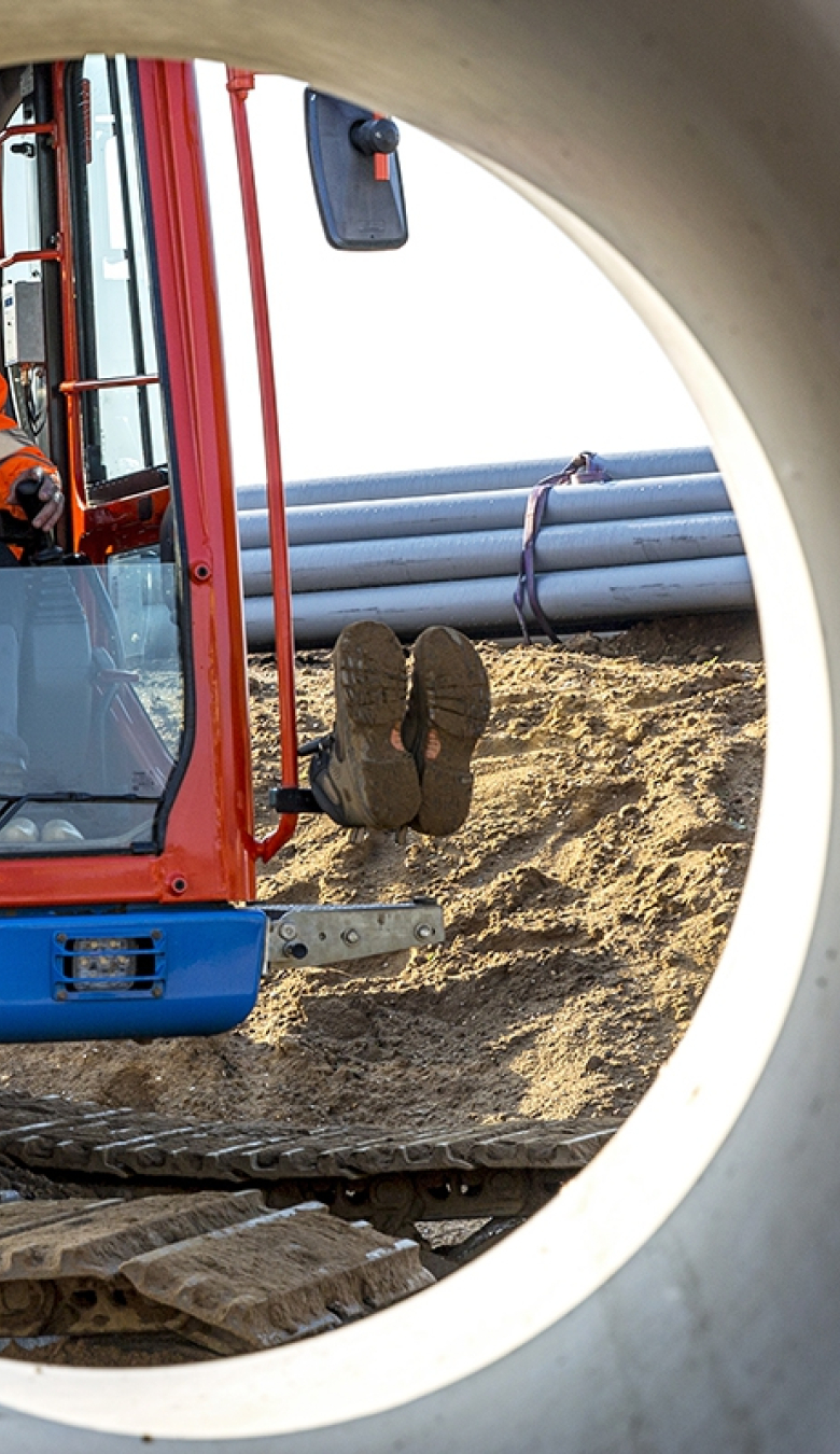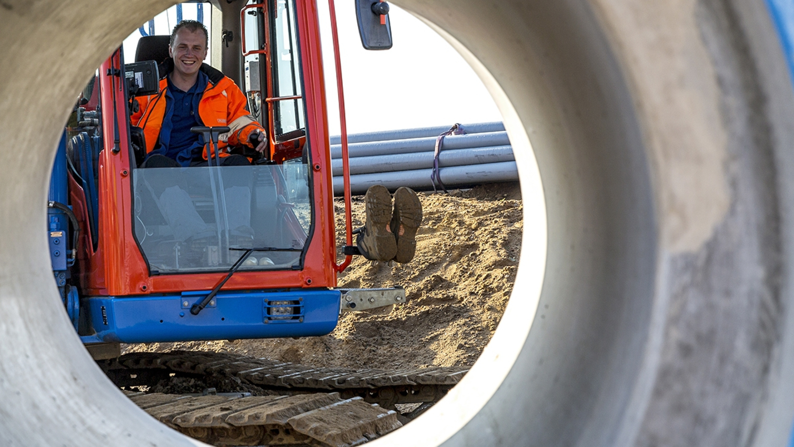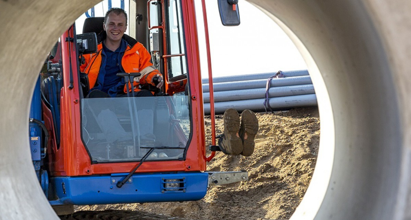 "Ik vind dijkwerk vooral mooi als er voldoende afwisseling is. Dat hadden we bijvoorbeeld bij mijn vorige klus in het centrum van Wanssum, een van mijn leukste projecten. De ene dag was je riool aan het leggen, dan weer dijken aan het bouwen. We hadden er een kleine club en de sfeer was goed. Iedereen stond er hetzelfde in: we wilden gewoon knallen. Dat werk had van mij nog wel tien jaar mogen duren, met zo’n topteam."