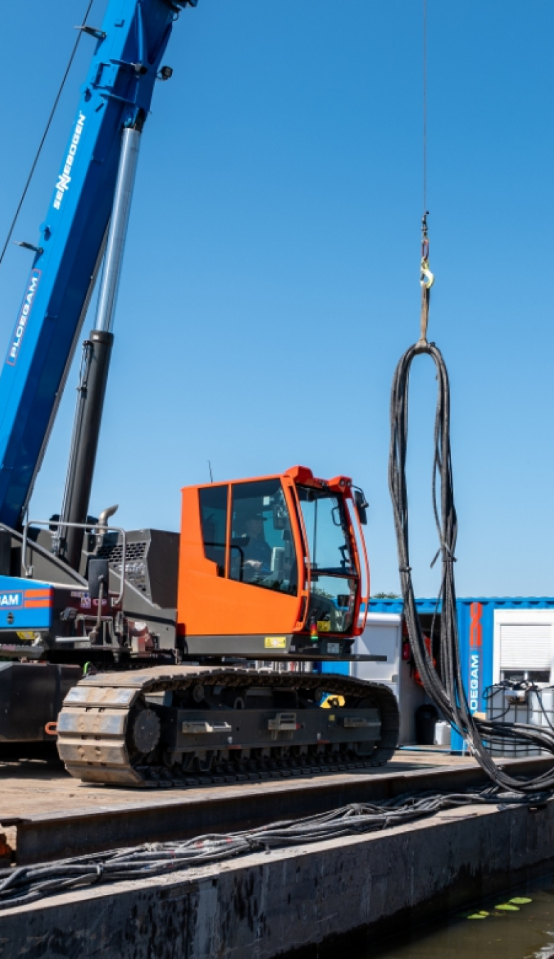Een uitdagende vraag die Ploegam aan Bredenoord stelde: Een emissieloze stroomvoorziening voor een combinatie met elektrische trilblok dat enorm veel stroom vraagt, die daarnaast op het water staat en waar geen netaansluiting beschikbaar is, en die tijdens het project over kilometers wordt verplaatst.