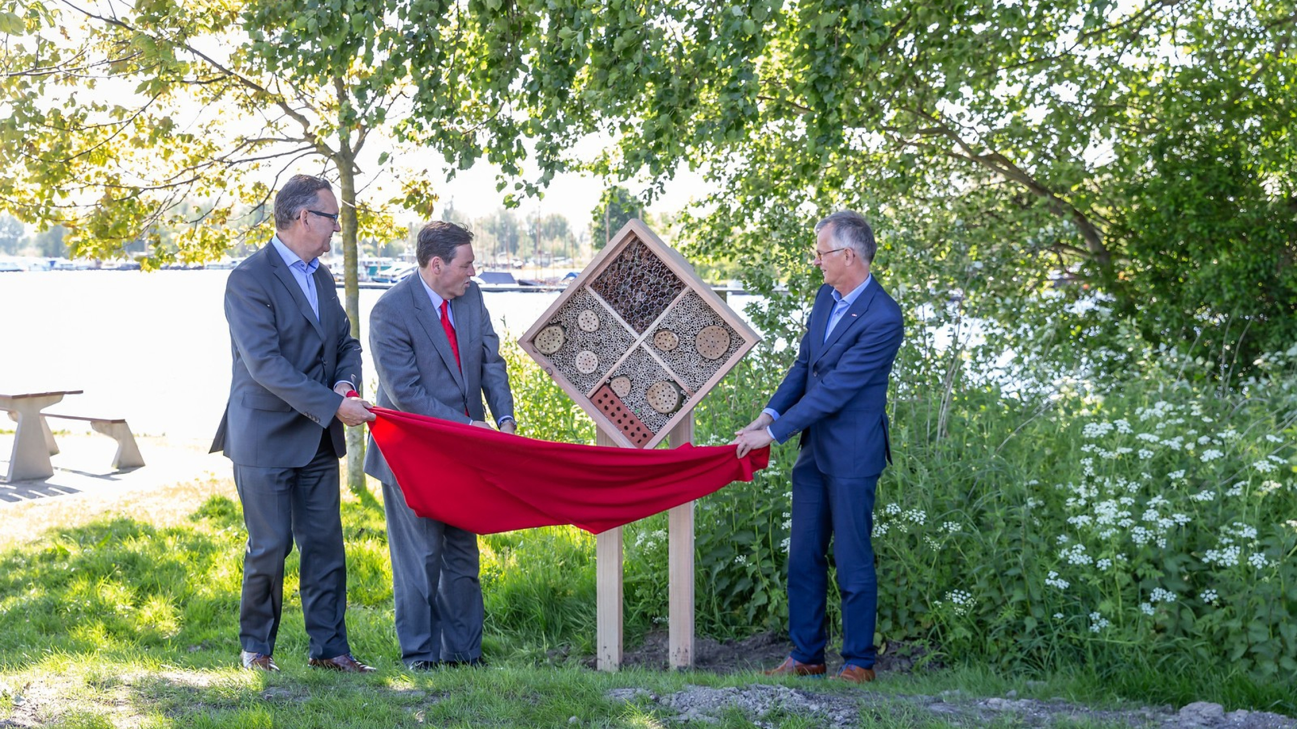Samen onthulden de drie bestuurders het bijenhotel dat aan de Zijldijk is geplaatst. Aanleiding voor dit bijenhotel is dat zowel provincie Zuid-Holland, gemeente Teylingen als Hoogheemraadschap Rijnland zich inzetten voor het vergroten van de biodiversiteit en het verbeteren van de leefomgeving van met name de (wilde) bijen.