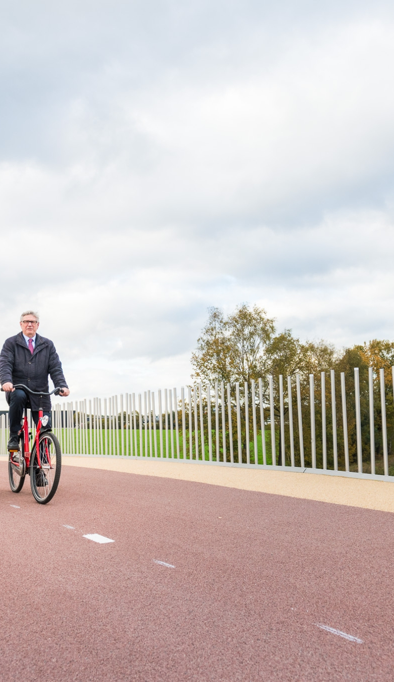 De ingebruikname van de brede en rood geasfalteerde brug markeert het einde van fase 2 van de grootschalige gebiedsontwikkeling van Eindhoven Noordwest, waar Ploegam de afgelopen periode samen met Heijmans, in opdracht van de gemeente Eindhoven, aan werkte. Om het gebied Eindhoven Noordwest - gericht op de hightechindustrie - te ontsluiten en de bereikbaarheid van de stad, bedrijventerreinen en Eindhoven Airport te verbeteren, breiden we de infrastructuur uit. Naast de nieuwe fietsbrug en Spottersweg werd eerder dit jaar al de Dirk Noordhoflaan opengesteld.