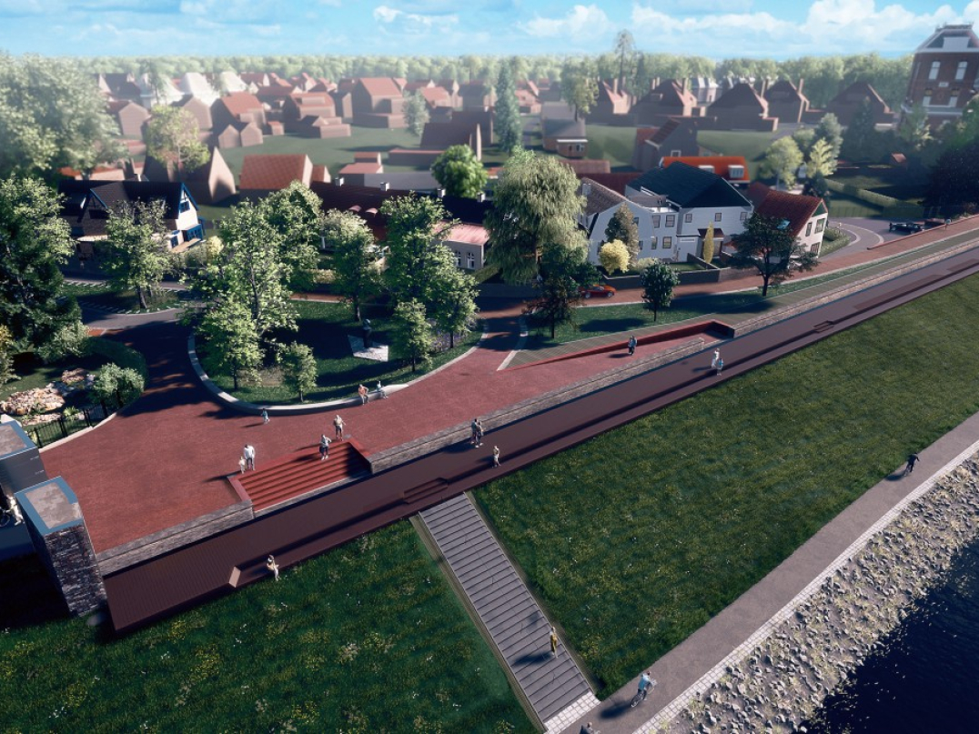Afbeelding: een impressie van de kering in het Limburgse Steyl
