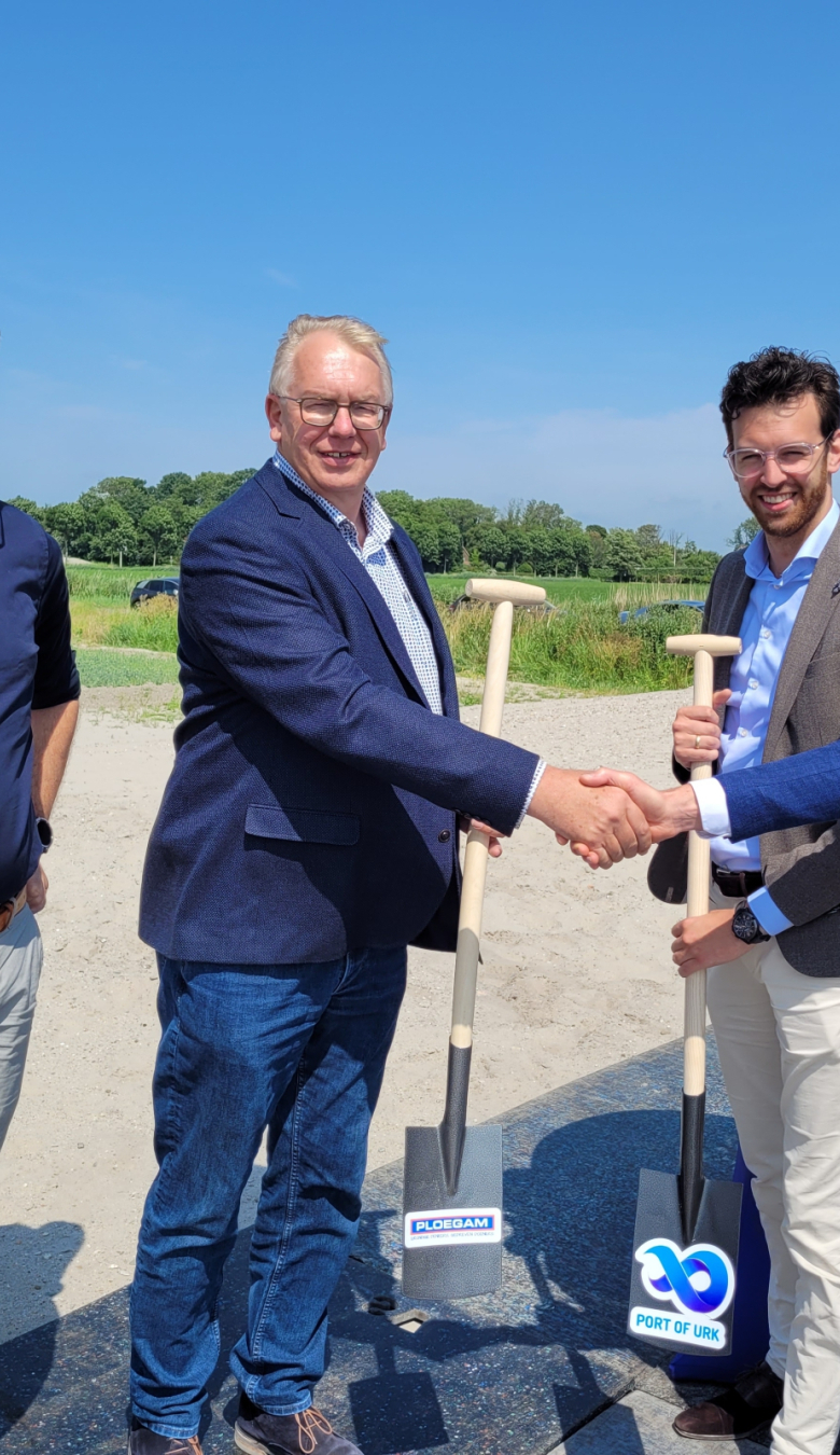 Wethouder Nathanaël Middelkoop van gemeente Urk en Gijs Ploegmakers, algemeen directeur van Ploegam zetten de handtekeningen onder de overeenkomst. Wethouder Middelkoop: “Ploegam heeft zich bewezen als een ervaren en betrouwbare partner in infrastructurele projecten. Het bedrijf liet tijdens het aanbestedingstraject zien de juiste expertise en kennis in huis te hebben. Met deze overeenkomst zetten we een belangrijke stap in het versterken van de Urker economie en het creëren van nieuwe werkgelegenheid. Stukje bij beetje verandert Port of Urk van plan in een nieuw deel van Urk en daar ben ik als wethouder natuurlijk erg blij mee.”