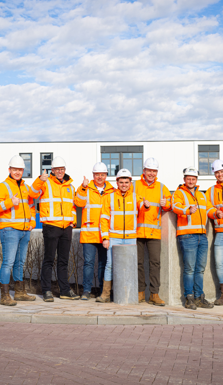 Door een symbolische sleuteloverdracht werd vervolgens de dijk overgedragen door de uitvoeringsmanager Dennis Wicherson aan de assetmanager en de beheerder van het Waterschap. Door beide handelingen werd het eerste stuk van het project opgeleverd én overgedragen in 1 dag. Daarmee een mooie prestatie van het hele projectteam, iets waar met veel trots hard aan is gewerkt.