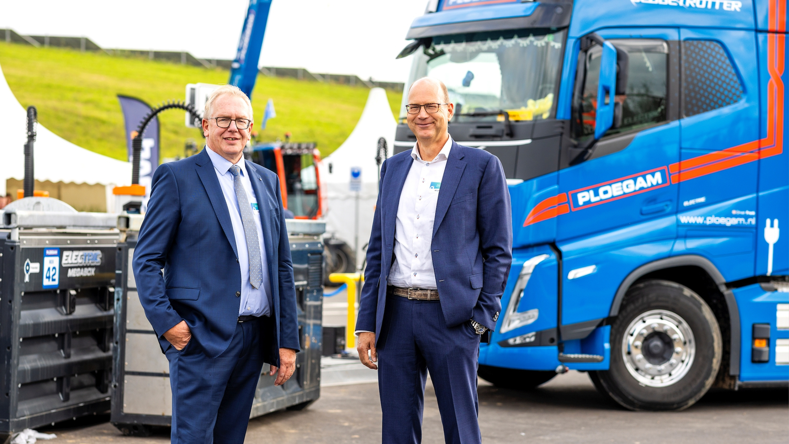 Gijs Ploegmakers (links) en Theo Winter (rechts) op laadplein WattHub