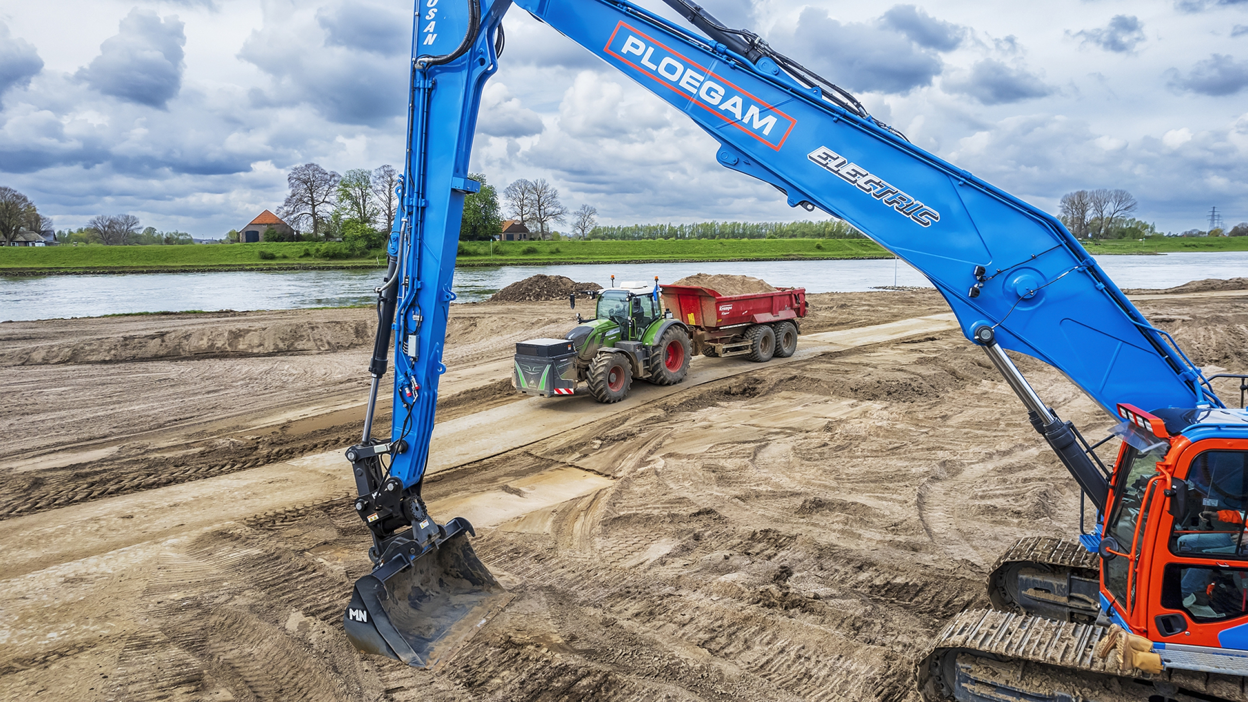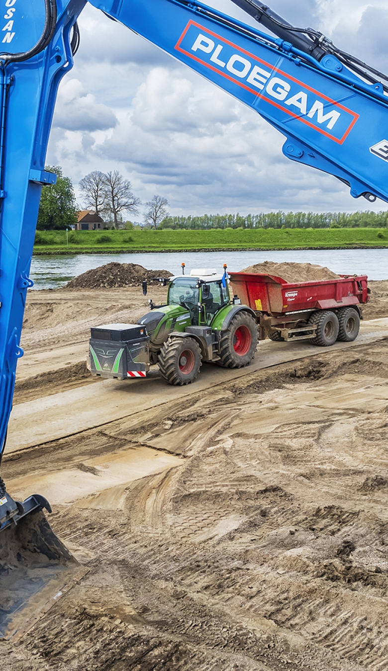 Bij het Pannerdensch Kanaal werkt Ploegam in opdracht van Rijkswaterstaat aan de verlaging van 35 kribben en vijf oevers. Het doel: een adequate afvoer van water, zodat bij laagwater het Pannerdensch Kanaal bevaarbaar blijft voor de scheepvaart en bij hoogwater het water sneller wegstroomt. Dat doet de Osse aannemer niet met regulier grondverzetmaterieel, maar elektrisch: met machines die werken op basis van accupakketten.