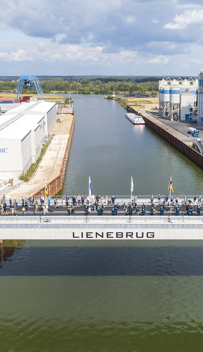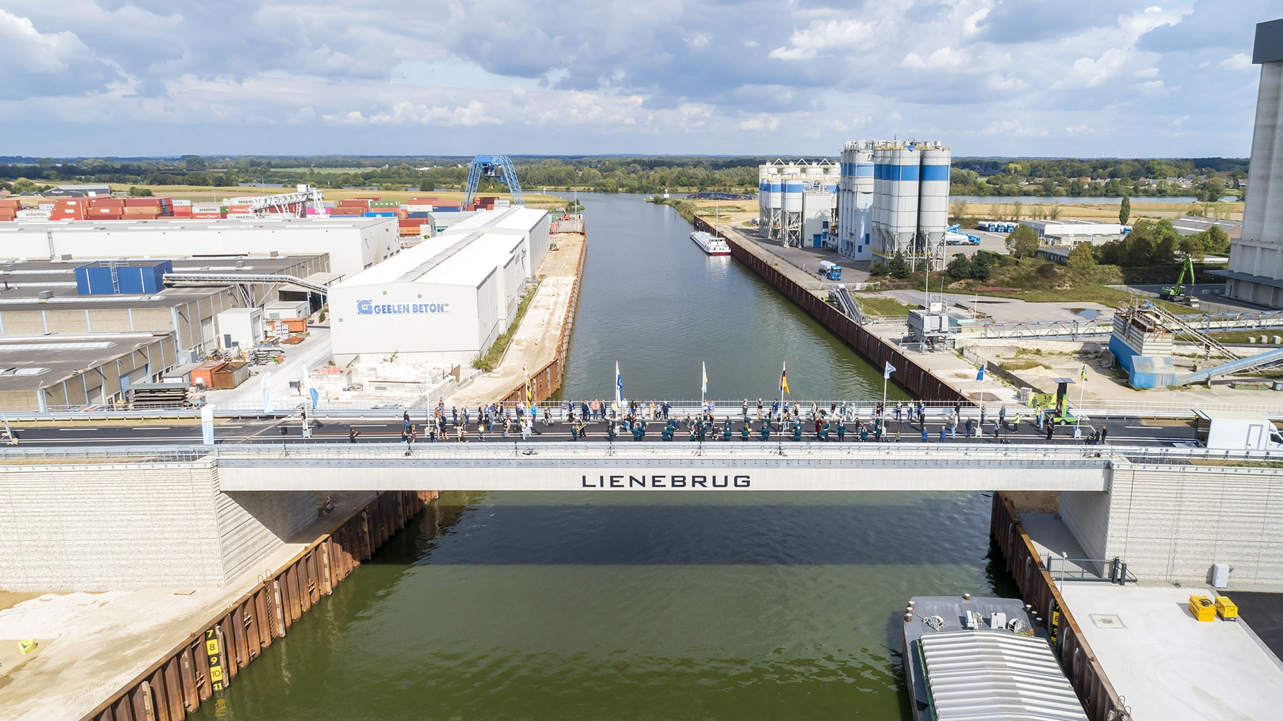 Wethouder Jan Loonen van de gemeente Venray en gedeputeerde Carla Brugman van provincie Limburg verrichtten zondag, onder muzikale begeleiding van Fanfare Concordia Wanssum en Marjorette Concordia Wanssum, de openingshandeling op de nieuwe Lienebrug.