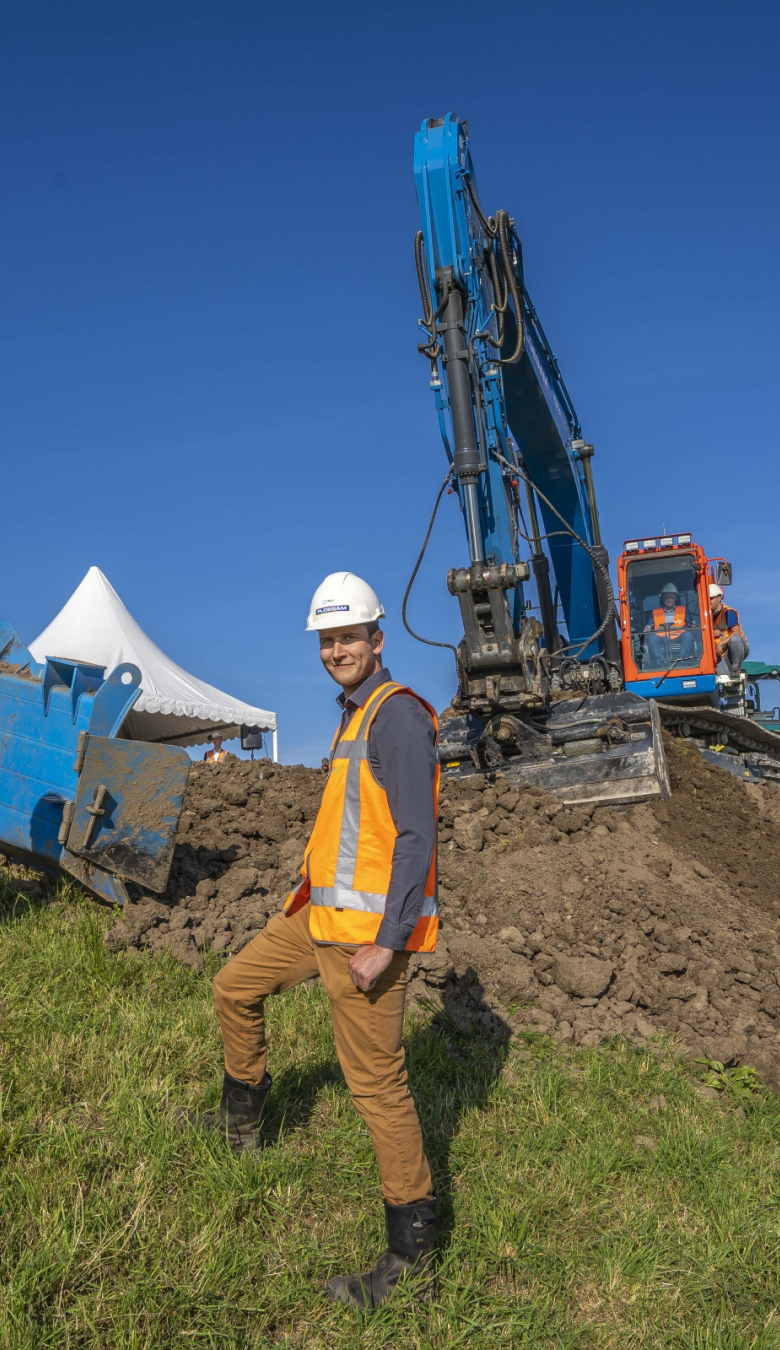 “Het waterschap heeft samen met de bouwcombinatie en Witteveen+Bos een goed doordacht en uitvoerbaar dijkontwerp gemaakt. De voorbereiding van de realisatie is toen ook al meegenomen”, vertelt Bram de Fockert, projectmanager van het waterschap. Afhankelijk van de locatie wordt de dijk hoger en breder, of worden er damwanden geplaatst en steunbermen aangelegd. In 2026 moet de dijk voldoen aan de waterveiligheidsnormen. Erik Wagener, directeur van het Hoogwaterbeschermingsprogramma: “De schop gaat in de grond en dat markeert een belangrijk moment. Hier gaan we veel van leren.”