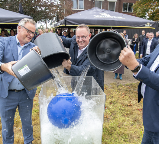 Na het bezoek van minister Madlener gaf Dijkzone Alliantie Arcen officieel het startsein voor de realisatiefase. Dit gebeurde met een symbolische demonstratie van de werking van de Vlotterkering®. Nadat een afvaardiging van bestuurders en bewoners een emmer water in een buis had laten lopen, verscheen het bouwdoek.