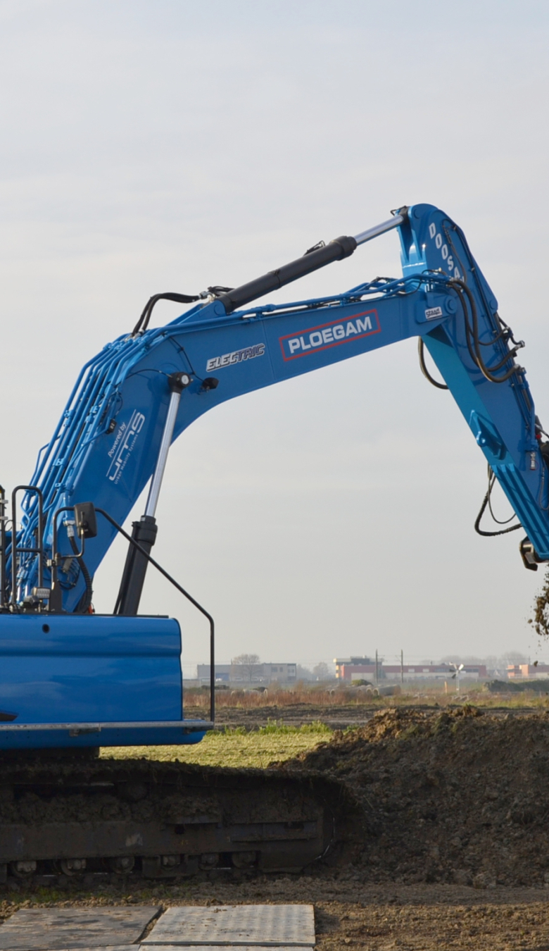 Ploegam ontwikkelde het afgelopen jaar, samen met Staad, een volledig elektrische, 30-tons rupsgraafmachine. Deze machine is voorzien van verwisselbare accupakketten waardoor deze 24 uur per dag inzetbaar is.