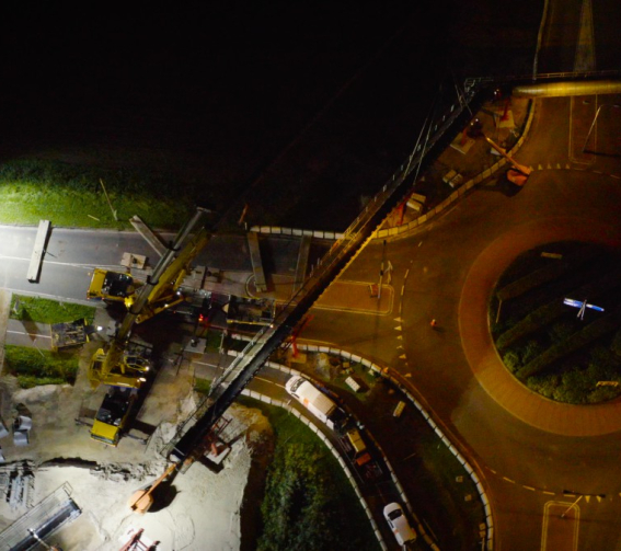 Voor de Gemeente Urk gaat Ploegam aan de slag met het bouwrijp maken van het bedrijventerrein Port of Urk. Hier komt veel verplaatsing van zand bij kijken. We hebben een innovatieve oplossing: we werken met een transportband over de weg. Onze graafmachine vervoert het zand vanaf het depot naar de transportband, die als een 'lopende band' het zand naar de overkant van de weg verplaatst.