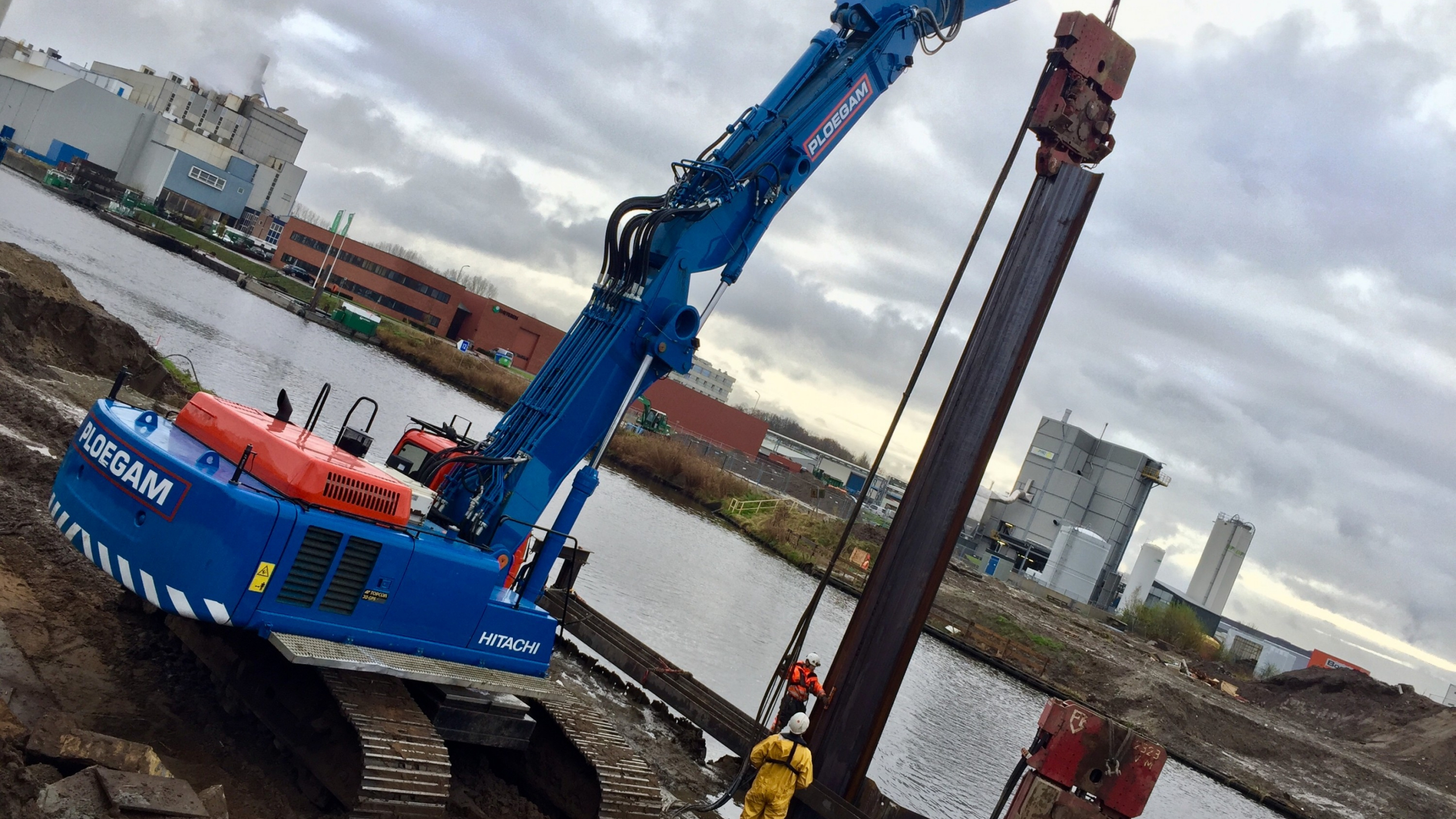In Hengelo ondersteunde Ploegam mede-aannemer Dura Vermeer bij de oeverconstructie van de nieuwe Boekelosebrug.