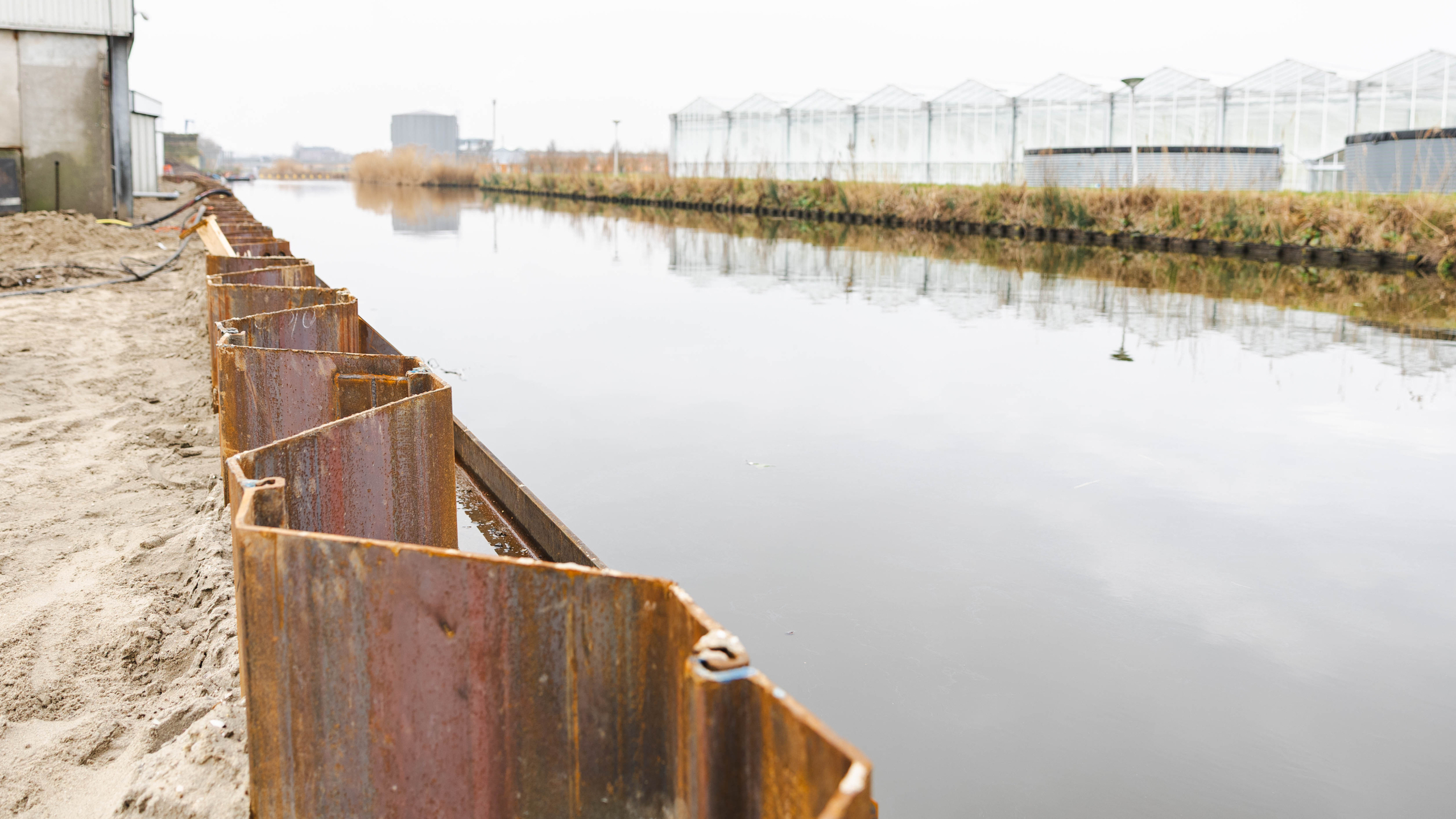 Uitvoerder Jeroen van den Ouweland vertelt meer over de uitgevoerde werkzaamheden. "De te vervangen kademuur liep achter een bedrijventerrein. Daar staat een loods op ongeveer één meter van de bestaande kade. Het aanbrengen van de stalen damwanden in combinatie met een smalle watergang met beperkte diepgang en het pand langs het water zorgde voor veel uitdaging. In een bouwteam werkten we samen met Hoogheemraadschap van Delfland aan het Voorlopig Ontwerp voor het vervangen van de kademuur. Bij het Uitvoeringsontwerp was maakbaarheid een bepalende factor.
