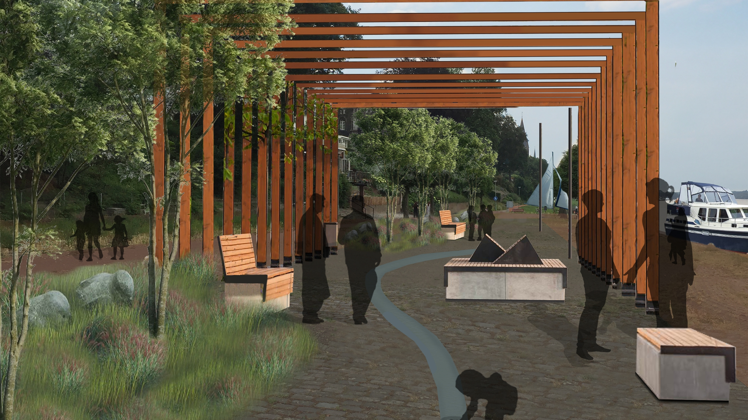 Voor het grootste deel van het werk hebben de opdrachtgever, gemeente Peel en Maas, en ontwerper Plangroep Heggen het ontwerp uitgedacht. Maar een gedeelte was nog aan de grondige denkers en gedreven doeners van Ploegam om een passend ontwerp voor te maken: dat was het hybride gedeelte van het contract waar wij onze meerwaarde konden bieden. Dit ging om het plaatsen van een damwand en de nieuwe trappartijen bij de aanlegsteiger, en het hoogwaterbestendig maken daarvan: een klus die ons wel is toevertrouwd!