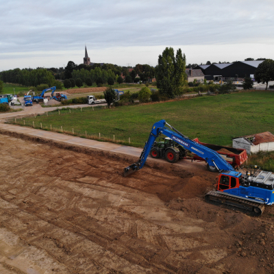 Vóór de bezweken damwand is een uitspoeling ontstaan, wat er waarschijnlijk voor heeft gezorgd dat de damwand is bezweken. Deze uitspoeling hebben wij na het plaatsen van de nieuwe damwanden aangevuld met klei vanuit ons project in Maurik. Omdat deze aanvulling onder water gebeurde, en je de aanvulling zo goed mogelijk wil borgen, voerden we een multibeampeiling uit met een peilboot. Zodra alle damwanden en ankers waren aangebracht en de uitspoeling juist was aangevuld met de klei, brachten we de wrijfgordingen en deksloven aan."