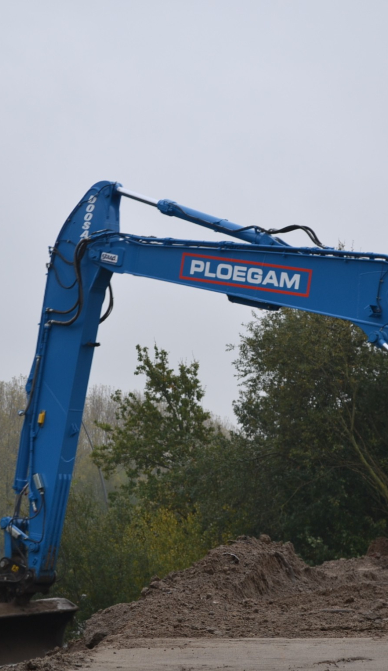 Hier ligt een geluidswal, waar de woonwijk Plateau Blixembosch Buiten tegenaan komt te liggen. Aan het team van Ploegam de taak om de grond, waar de woonwijk moet komen, bouwrijp te maken en de voorbereidende werkzaamheden te doen.