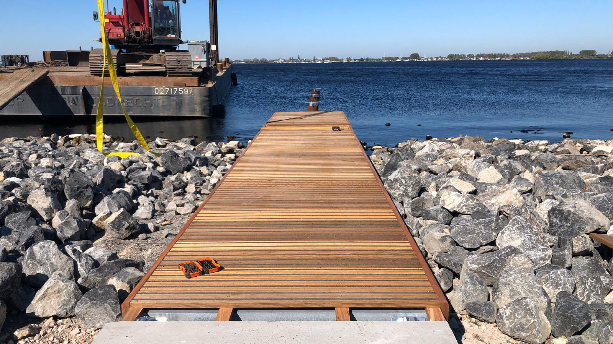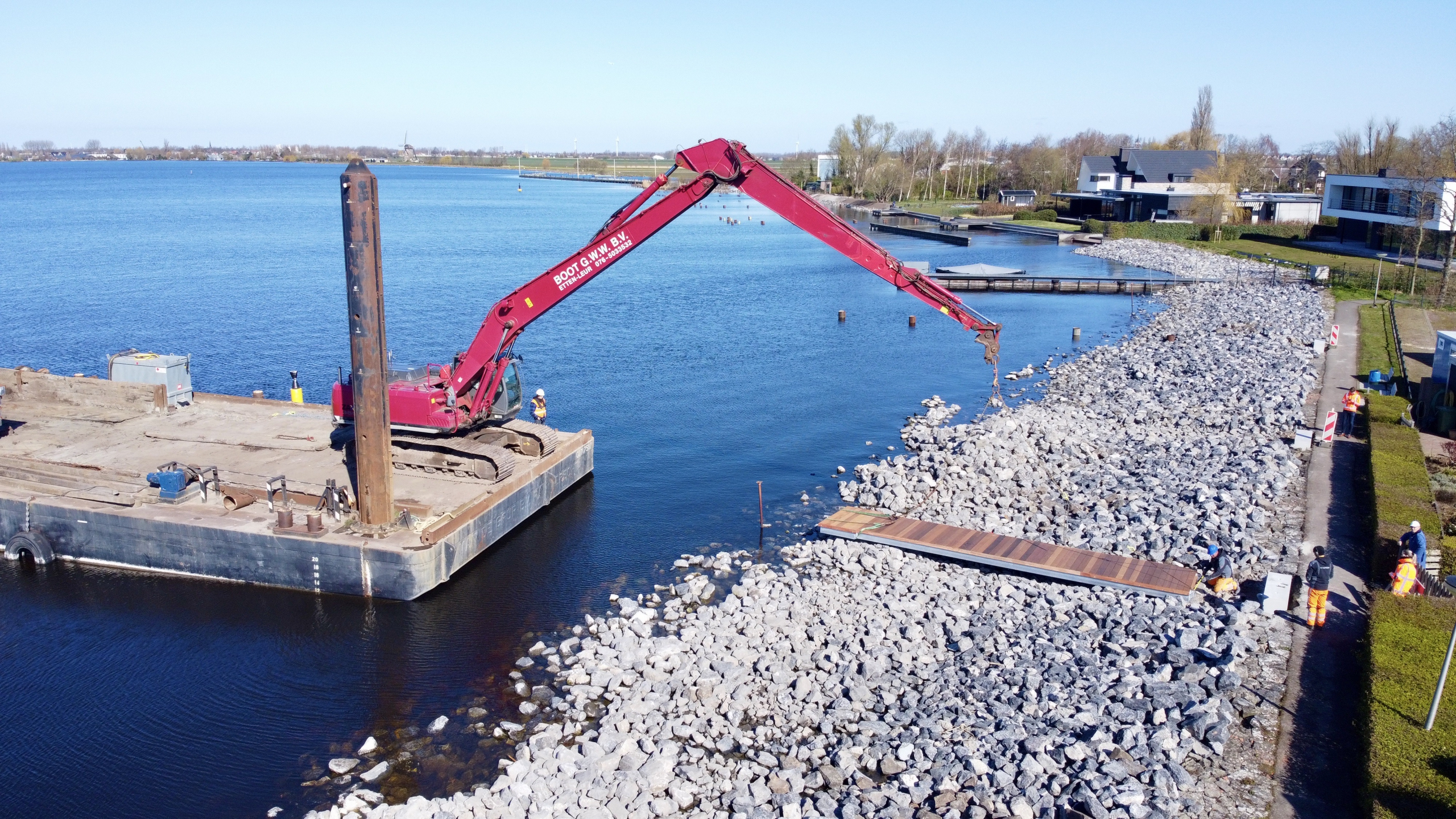 “Gevolg van de nieuwe oeverbescherming was wel dat bestaande steigers geen functie meer hadden. De steigers waren te kort en konden niet meer bereikt worden met een boot. Het hoogheemraadschap heeft daarom besloten om de bestaande steigers te verwijderen en nieuwe verlengde steigers aan te brengen bij de woningen/percelen. Zo zijn de steigers ook te gebruiken als zwemsteiger en aanmeervoorziening van pleziervaart”, aldus Paul.