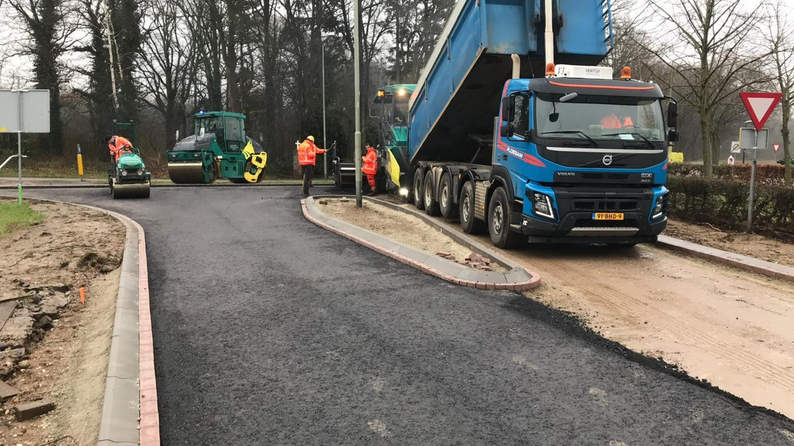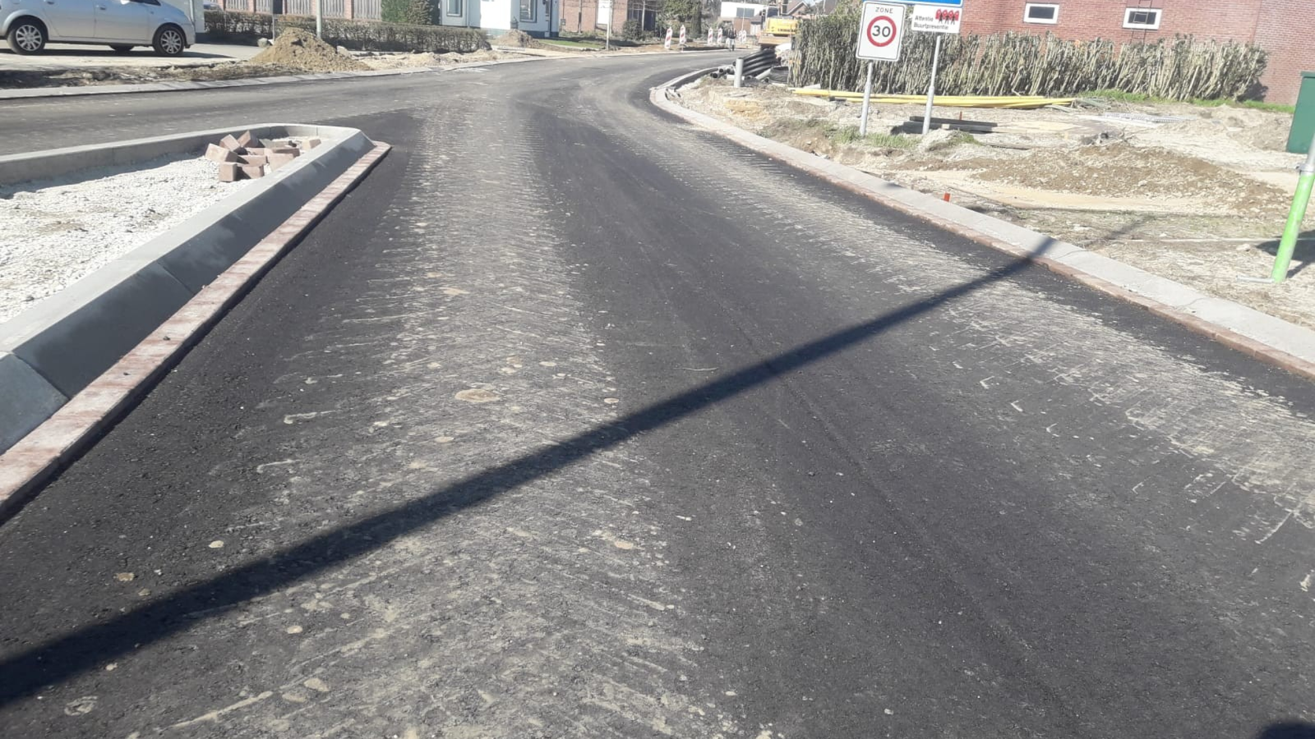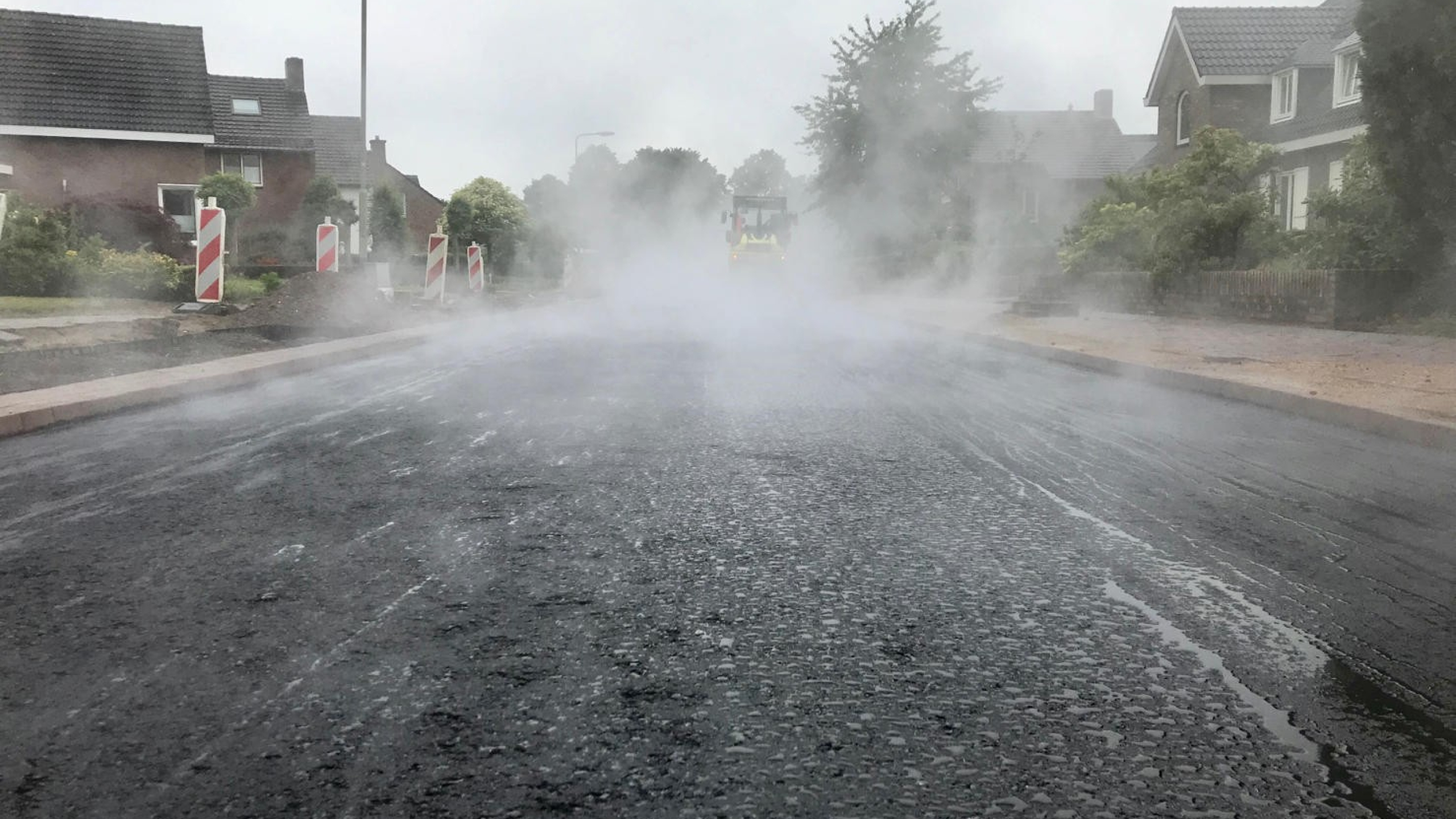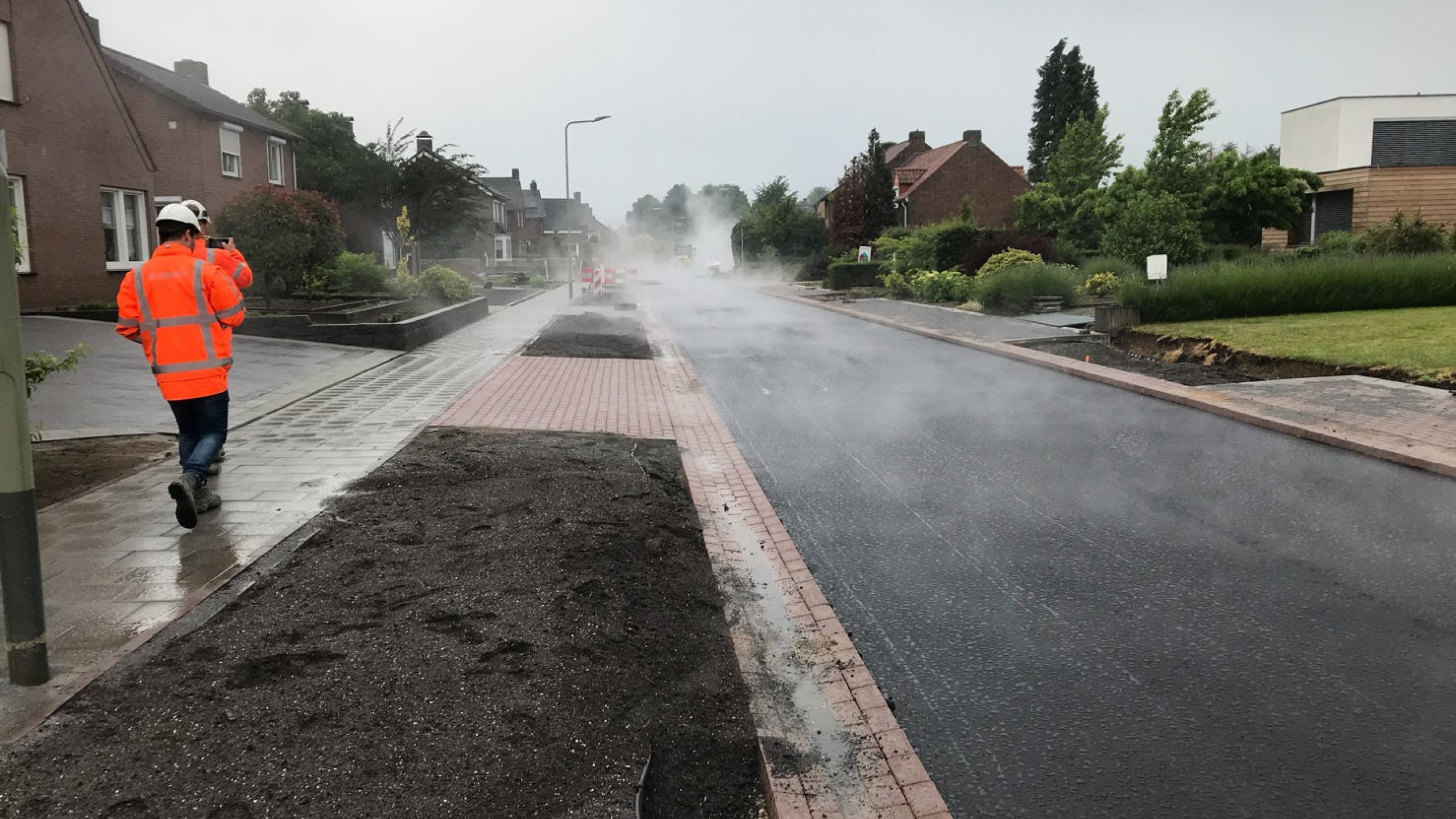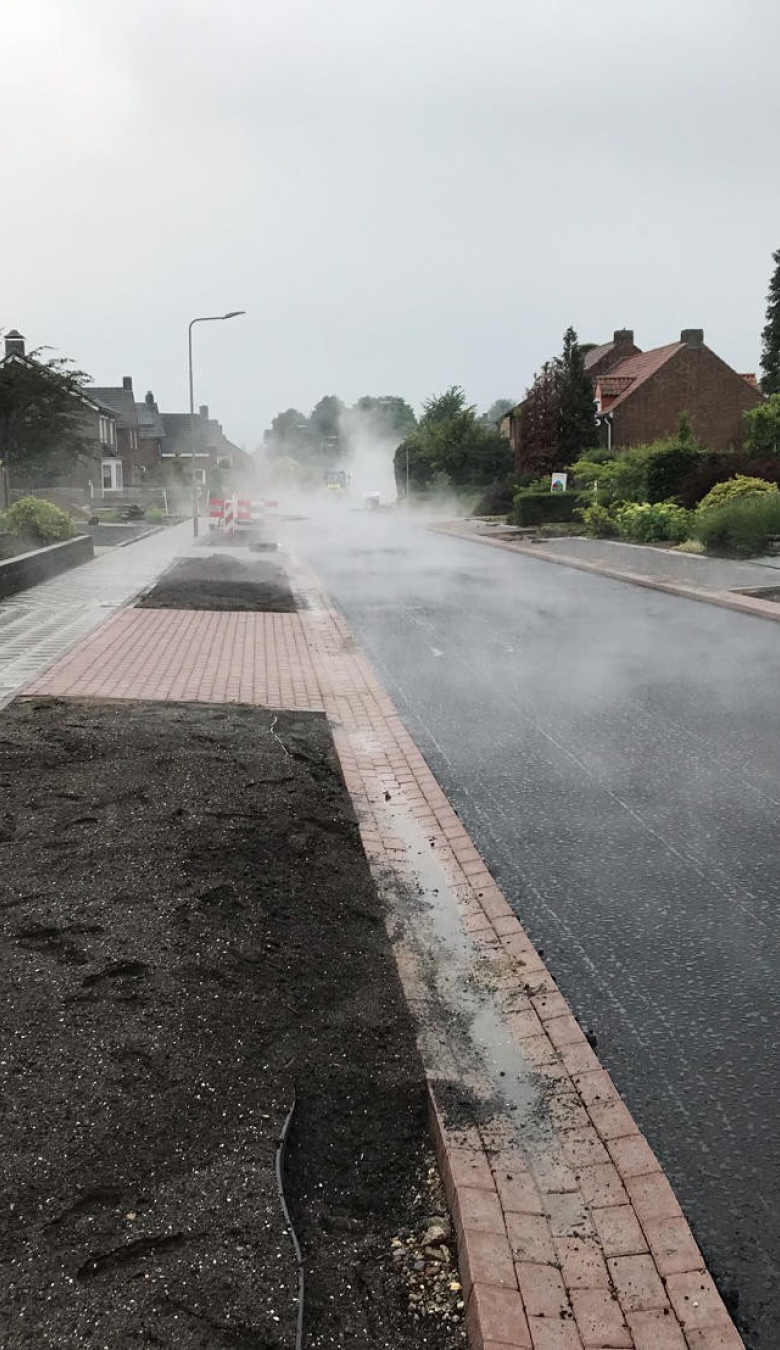 Om de straat een mooie uitstraling te geven, was de wens van de opdrachtgever om relatief grote bomen te planten. Dat geeft direct een mooi groen effect! Er wordt gewerkt met een speciale constructie met boomgranulaat, een mengsel dat voor dit soort toepassingen perfect is: de boom groeit er goed in en het biedt genoeg draagkracht voor de bovenliggende weg, zonder scheuren door groei van de wortels.