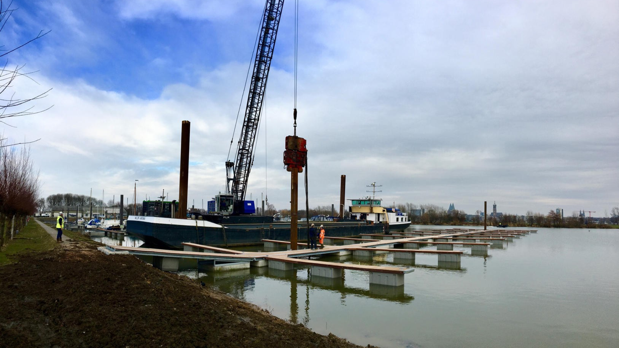 Yoeri Slats, projectmanager bij Ploegam, vertelt over dit project: “De jachthaven hebben we stevig aangepakt. We zijn gestart met het verwijderen van groen, stortsteen en de strekdammen (grond en grind). Vervolgens hebben we nieuwe palen aangebracht voor de bootsteigers. Momenteel ronden we de laatste fase van het project af: we brengen de wegverharding aan.”