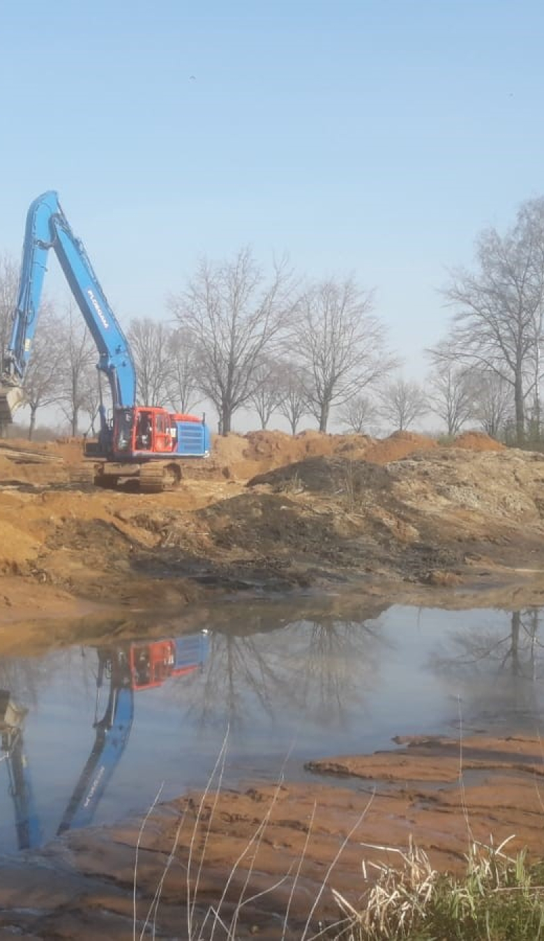 Collega’s Ad van den Elzen en Jan van Lokven zijn samen aan de slag om de visvijvers uit te diepen, te vergroten om meer visplekken te creëren. Jan van Lokven vertelt over het project: “Ik ben nu bezig met uitbaggeren van de Roversheideplas. Een mooie klus. Daarnaast ga de plas eens zo groot maken, zodat er meer mensen gebruik van kunnen maken. Daarna gaan we op het terrein ook een kindervijver en kikkerpoel aanleggen.”
