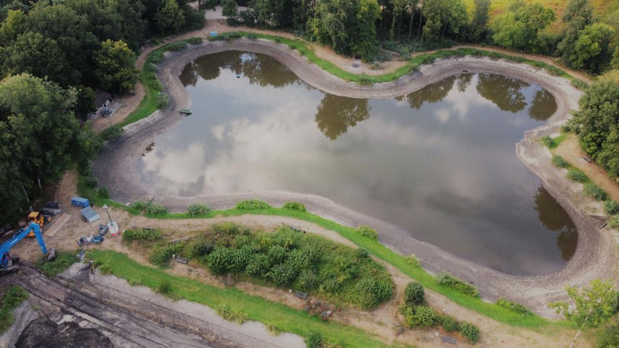Roy van Emmerik: “Op natuurlijke wijze zetten we de vijvers droog tot huidig bodempeil. Het water gebruikten we voor het vullen van de ijsbaanvijver. Wij diepen de visvijvers verder uit tot nieuwe ontwerphoogte, die circa anderhalve meter dieper ligt dan het oorspronkelijke bodempeil. De huidige bodem bestaat uit zand en grind, waardoor de vijvers niet ‘waterdicht’ zijn. Daarom voorzien we hem van een water-afsluitende kleilaag aan. Daarnaast realiseren we ook verschillende visstekken en creëren we voor mindervaliden een visstek bij de Schaepmanvijver.”